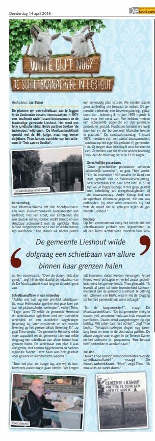 Het heeft veel kruim, veel reisjes naar Gedeputeerde Staten, Brabantse Milieufederatie, 30.000 guldens en zelfs banen gekost. De Schietbaanaffaire haalde zelfs het satirische programma " Hoe bestaat het " van Ati Dijkmeester.