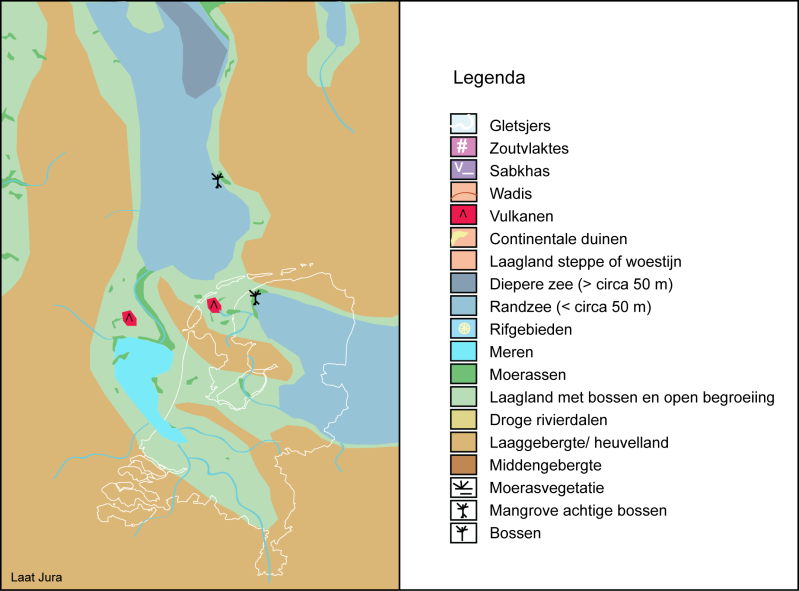 De Schieland-, Scruff- en Niedersachsen Groepen uit het Laat-Jura vertegenwoordigen zowel mariene als terrestrische milieus. Ze zijn tot maximaal tweeëneenhalve kilometer dik. Er vormden zich in Nederland verschillende kleinere bekkens, die elk een eigen afwisseling van zee- en landcondities kenden. De Scruff Groep, die voorkomt onder de Nederlandse Noordzee, is vrijwel helemaal in zee gevormd. In de Niedersachsen Groep komen ook zoutafzettingen voor.